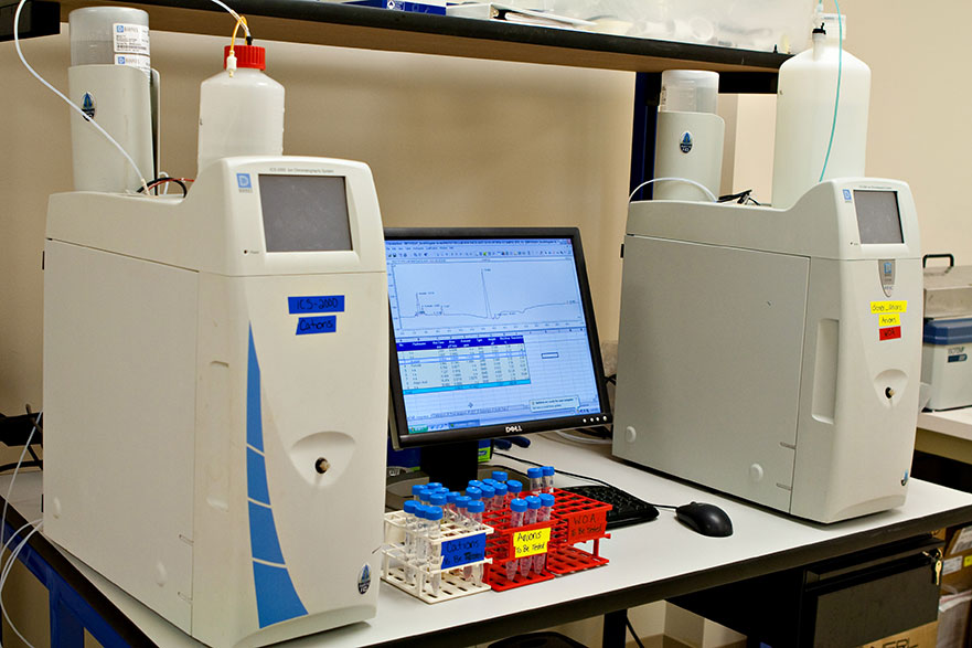 Ion Chromatography (IC) or Ionic Cleanliness testing is performed in compliance with IPC-TM-650, Method 2.3.28, “Ionic Analysis of Circuit Boards, Ion Chromatography Method”, on either bare boards (PCB) or electronic assemblies (PCBA). A conductivity detector measures the ionic activity, separated in anions, cations and weak organic acids, of the solvent extract from each individual sample presented in μg/in2.