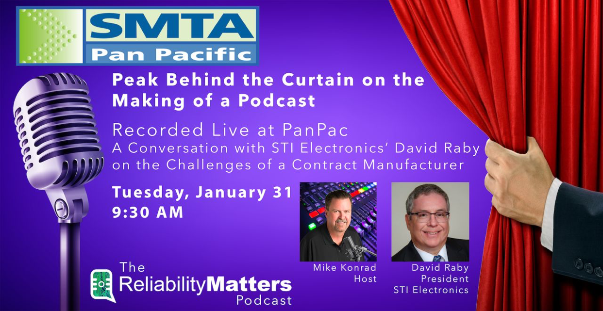 MADISON, AL — January 2023 — STI Electronics, Inc STI Electronics, Inc., a full service organization providing training services, training materials, analytical/failure analysis, prototyping, and contract PCB assembly, today announced that David Raby, President & CEO, will participate in the Reliability Matters Podcast during the SMTA Pan Pacific Microelectronics Symposium on Tuesday, Jan. 31, 2023 at 9 a.m. in Kauai, Hawaii.