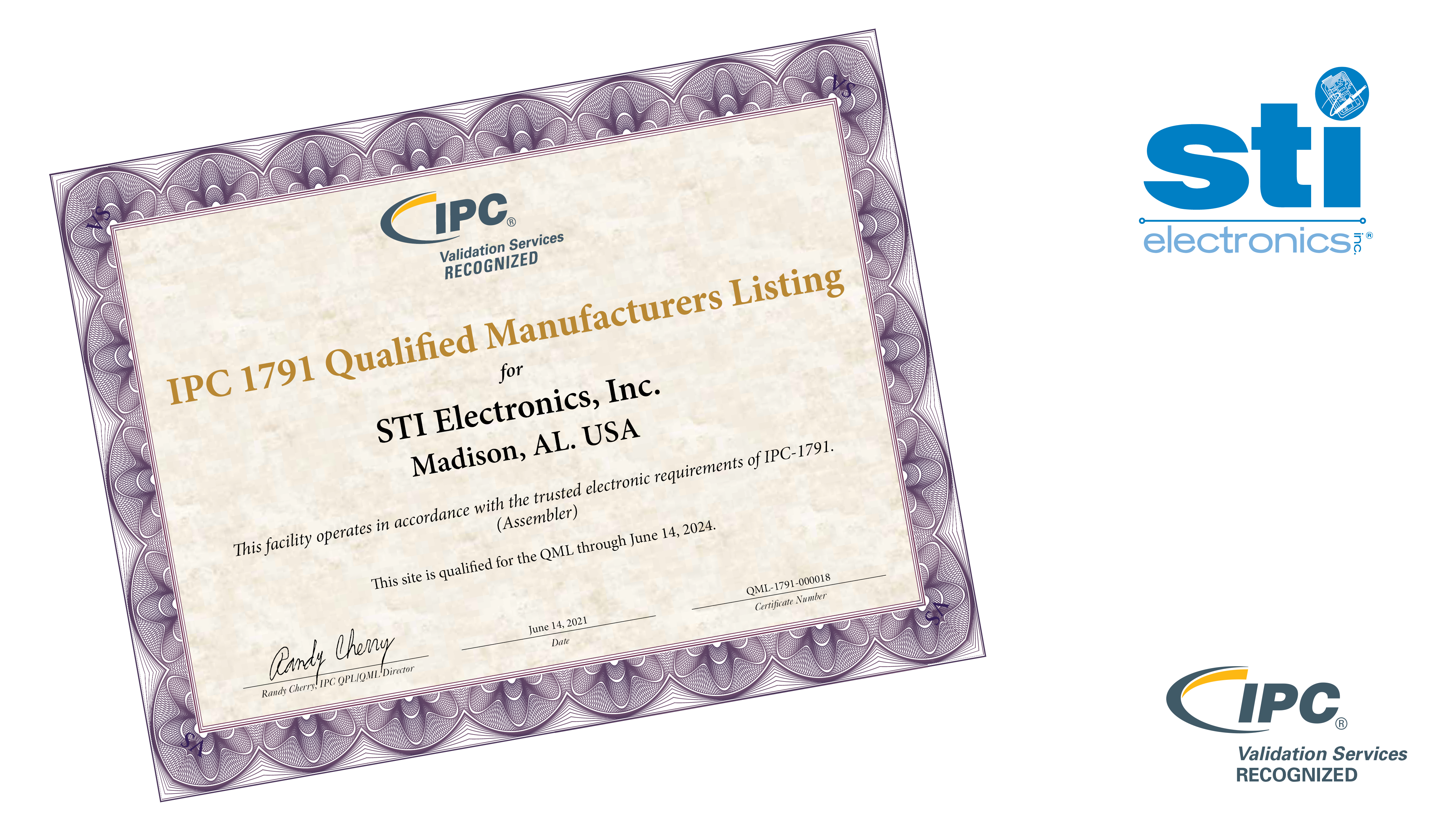 MADISON, AL – June, 2021 – STI Electronics, Inc., a full service organization including engineering, contract manufacturing and training services announces it has successfully completed certification for QML IPC-1791.