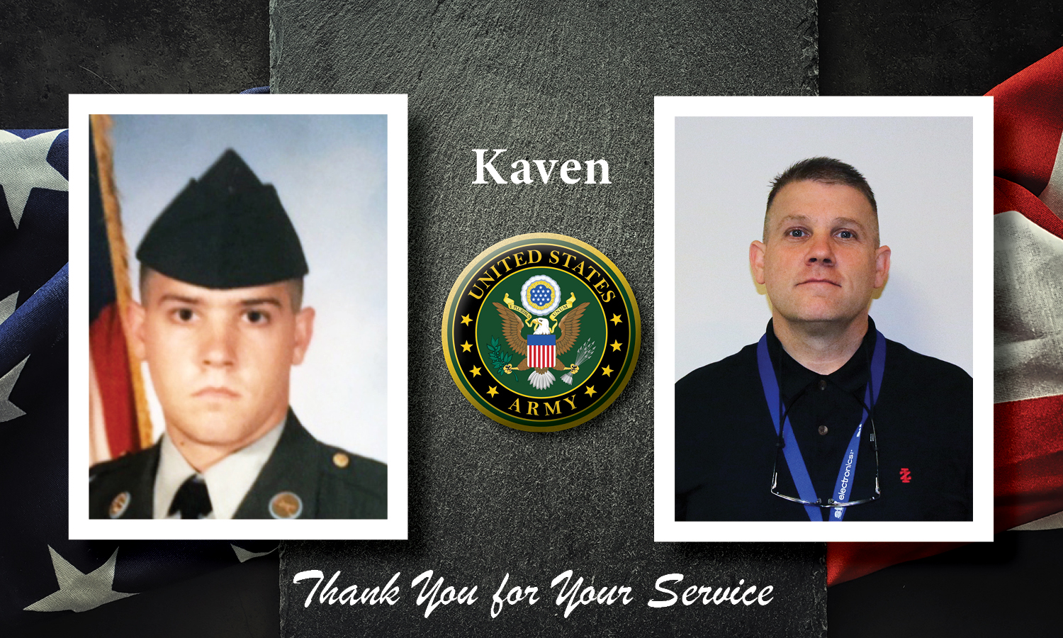 Kaven achieved the final rank of Sergeant/E-5 before being Honorably Discharged in December 2000.