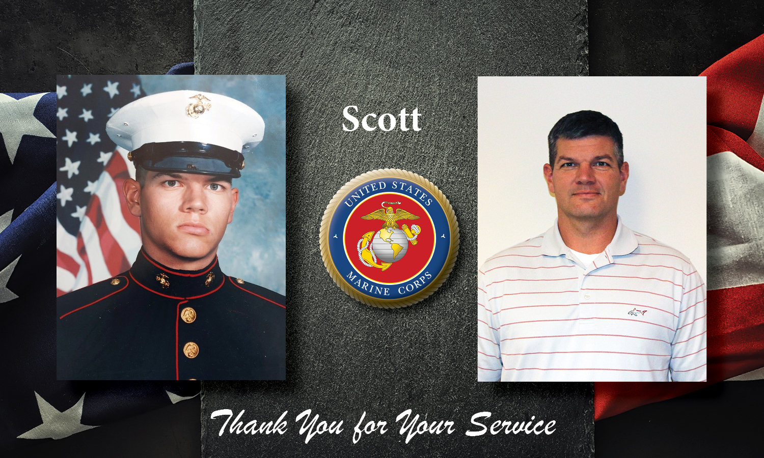 Scott completed US Marine Corps Recruit Depot Parris Island in Port Royal, SC. He graduated on November 12, 1993 two days after the USMC Birthday.