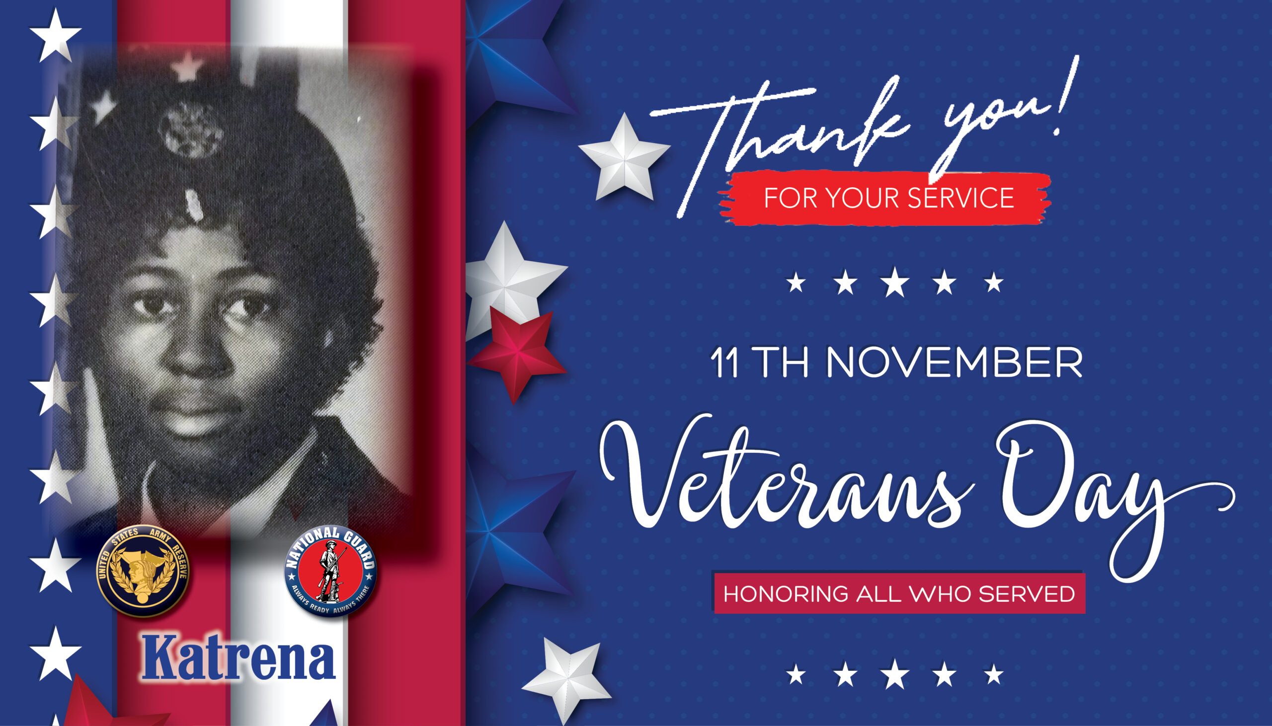 STI would like to Honor Katrena for her service in the Army Reserve and Army National Guard.