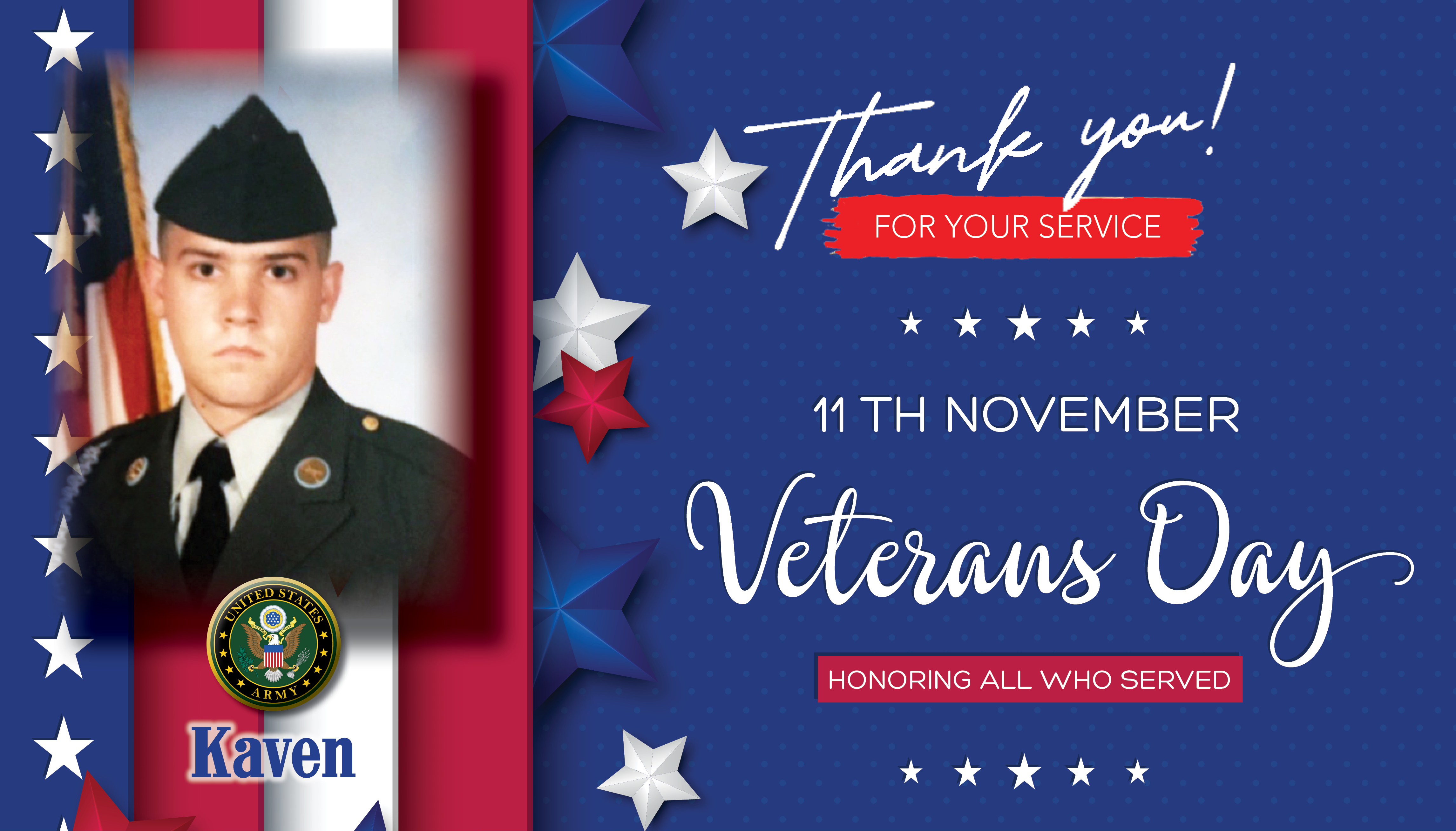 Kaven achieved the final rank of Sergeant/E-5 before being Honorably Discharged in December 2000.