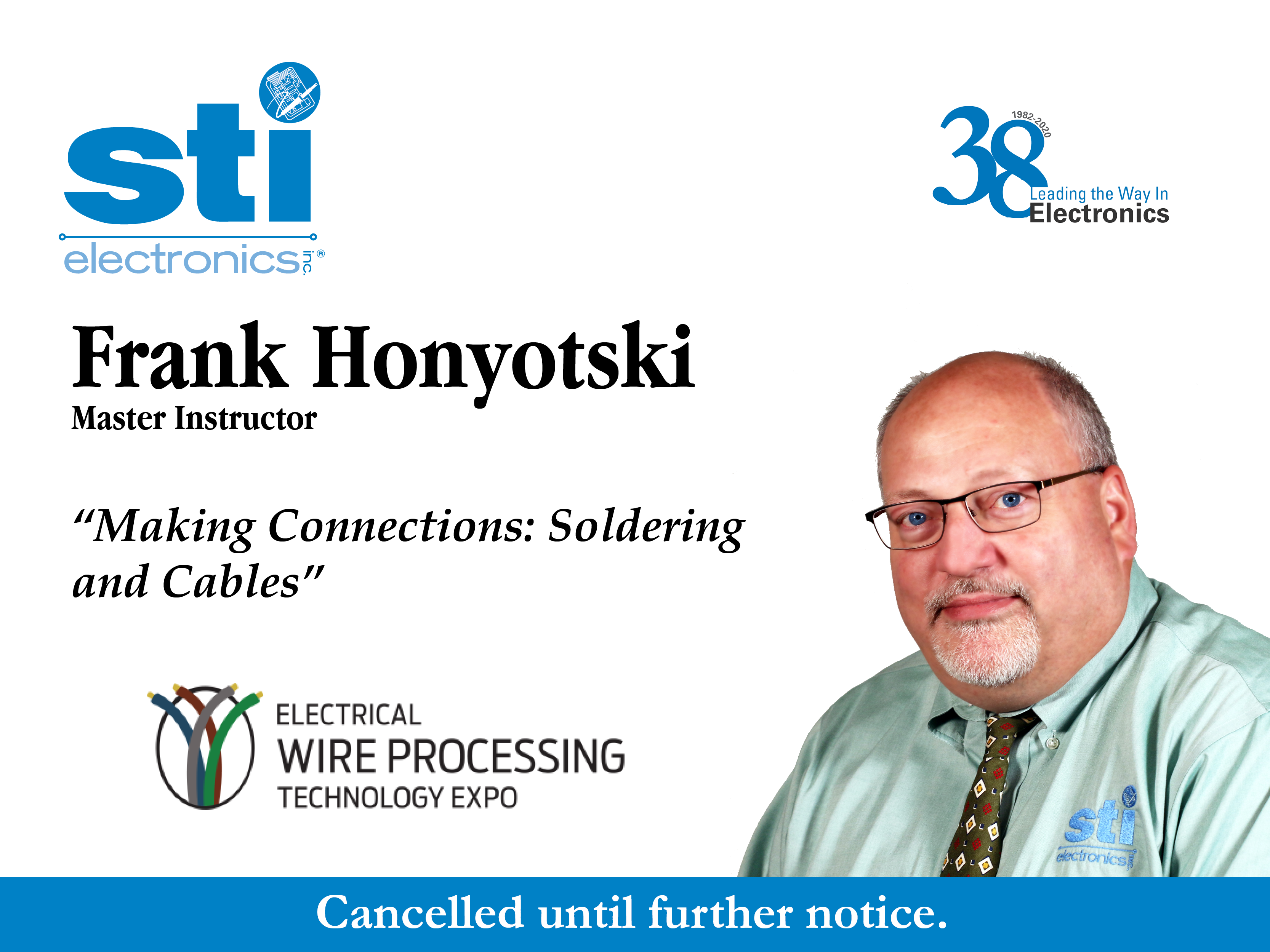 MADISON, AL – February, 2020 – STI Electronics, Inc., a full service organization providing training services, training materials, analytical/failure analysis, prototyping, and small-to-medium volume contract PCB assembly, would like to invite everyone to join Frank Honyotski, Master Instructor, in a discussion on different solder alloys used in cable manufacturing at the Electrical Wire Processing Technology EXPO May 14th in Milwaukee, WI.