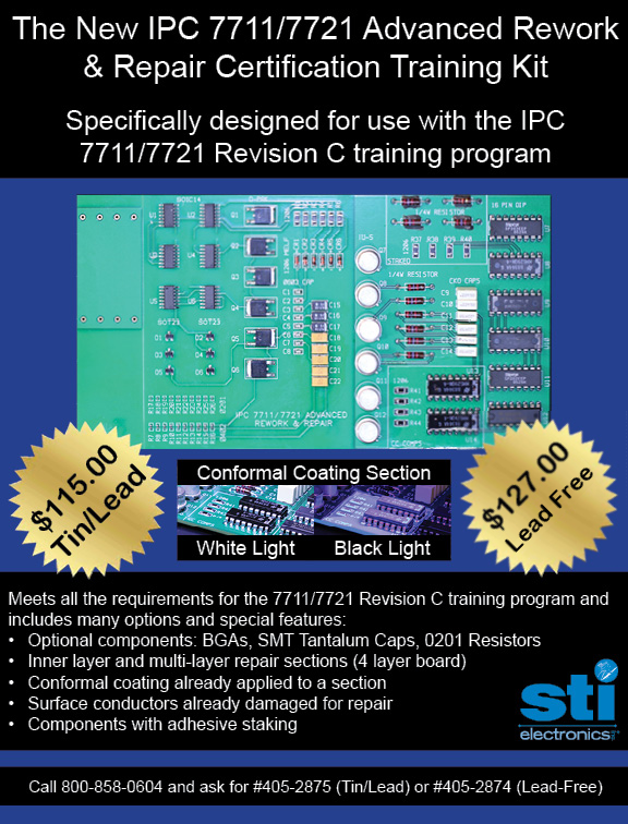 Meets all the requirements for the IPC 7711/21 Revison C training program and includes many options and special features:
